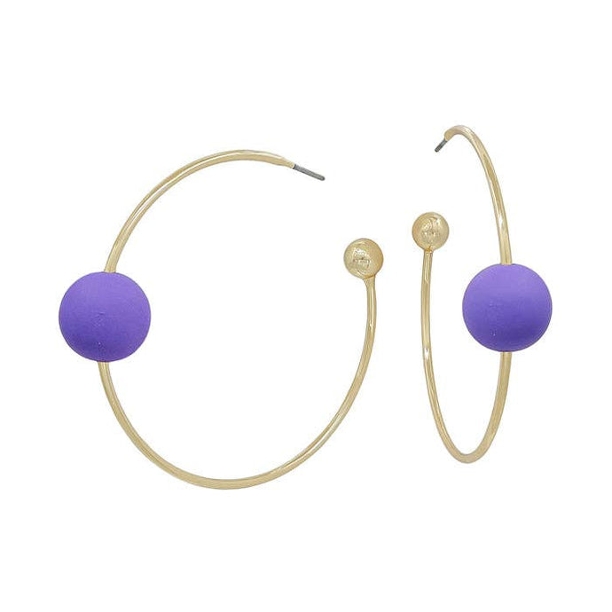 Gold Hoop with Purple ball earring 1inch