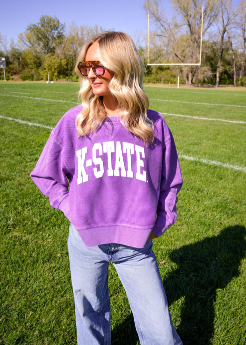 K-State Purple Corded Oversized Sweater