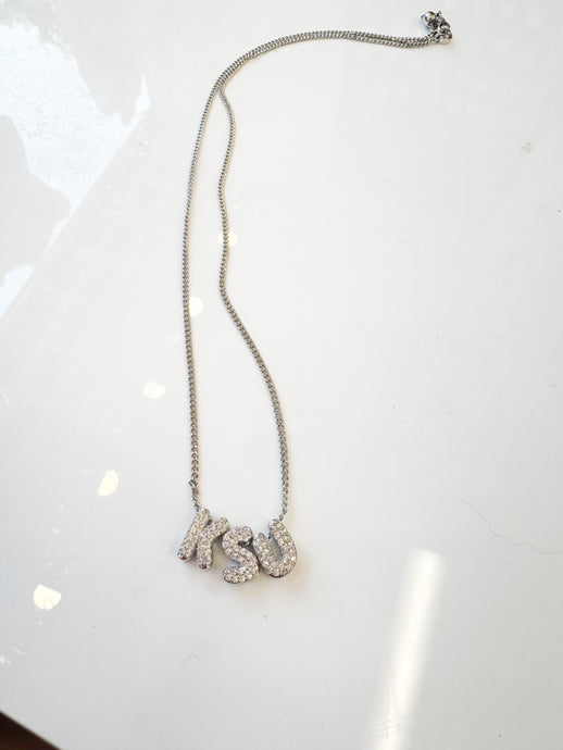KSU Silver Rhinestone Necklace