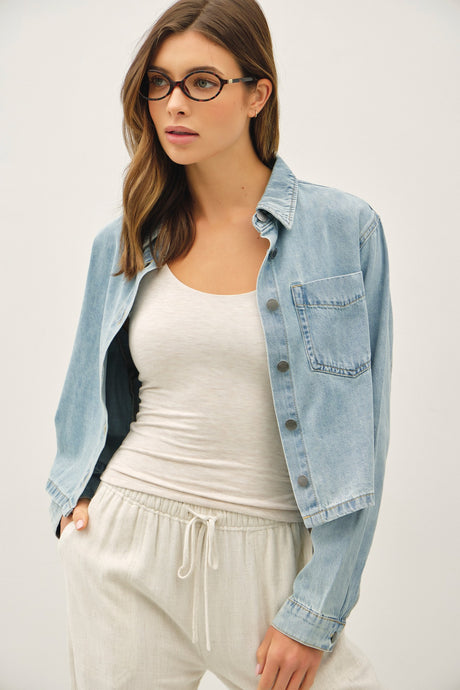 • Boxy Light Wash Button Up Jacket