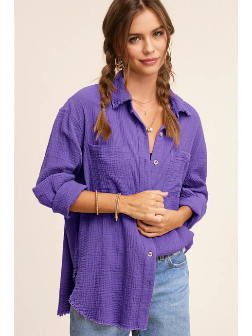 • Gauze Oversized Button-Down Shirt Jacket