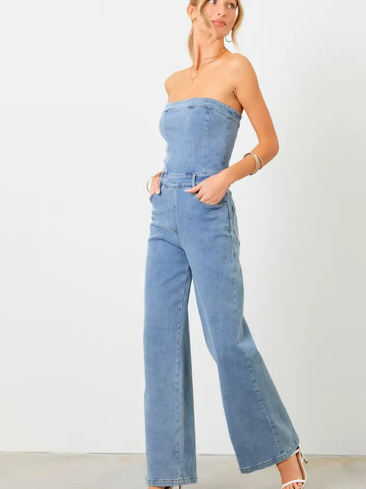 -Denim Jumpsuit. -Invisible Side Zip Fastening. -Slim Fit Top. -4 Pockets. -Perfect For Date, Party, Vacation or Holidays. Combine It With Stylish Heels or Flats For A Casual Daily Wear.
