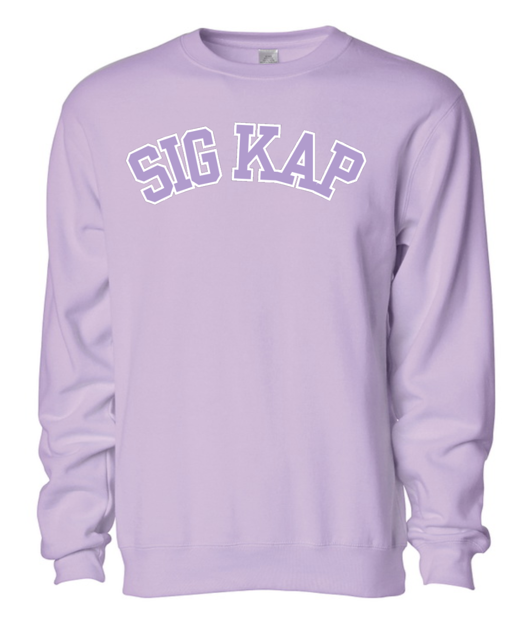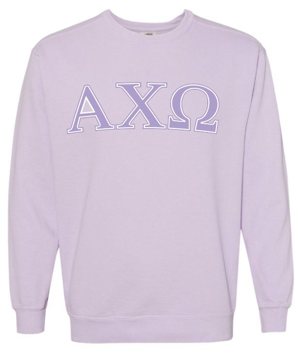 Crewneck sweatshirt that can be customized for a variety of sororities, including: Alpha Chi Omega, Alpha Delta Pi, Alpha Gamma Delta, Alpha Xi Delta, Chi Omega, Delta Delta Delta, Gamma Phi Beta, Kappa Alpha Theta, Kappa Delta, Kappa Kappa Gamma, Pi Beta Phi, Sigma Kappa, and Zeta Tau Alpha.
